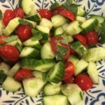 Why are the best most flavorful dishes sometimes the most simple? This super simple low FODMAP friendly salad my brother and I created when he was grilling burgers and vegetables and we wanted a side salad with the remaining ingredients I had in the house. This was the perfect addition to have something light and refreshing to go along with a burger! I use a grocery delivery service about once a week so I try to use up what ingredients I have in the house instead of running out for one or two ingredients. Not only does this help reduce the amount of food waste but it also keeps me from going to the store every other day. This is even more important right now during the COVID pandemic as I want to limit my time out of the house. Curious to hear if you’ve changed the ways you shop since this COVID outbreak? I know I am utilizing what foods I have in my refrigerator, freezer, and pantry much, much more! Sometimes the best recipes come from a little creativity! A little olive oil, fresh herbs from my herb garden, and salt, we were good to go!
