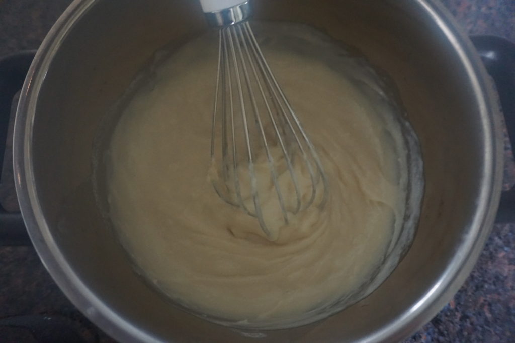 - Pour the mixture back into the sauce pan and return to medium heat, whisking continuously until mixture begins to thicken and bubble.