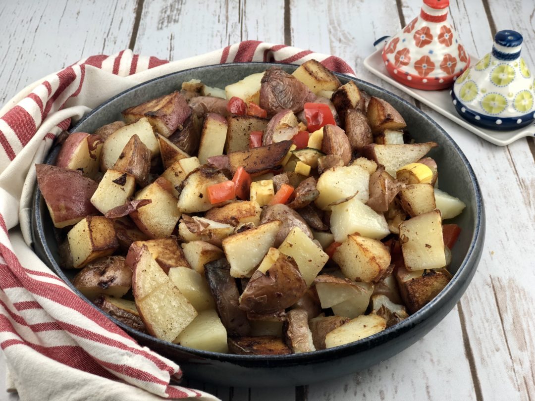 I’m picky about my breakfast potatoes. They have to be REALLY good for me to want more than a bite. Otherwise, I’d rather eat waffles, pancakes or muffins. If you can’t tell, I love my sweets. 🙂 After doing some serious research for IBS breakfast recipes, I realized the trick to making super crispy and flavorful breakfast potatoes is to bake, lightly fry and season. If only I had known this secret all along. Sounds easy enough, right?