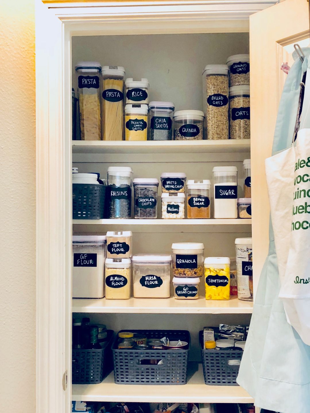 First, figure out everything you are dealing with. Get rid of or donate any items you don’t use, duplicates, broken items and expired food. Organize the items on the counter or floor for each group. Remember the goal is to only keep items you use.