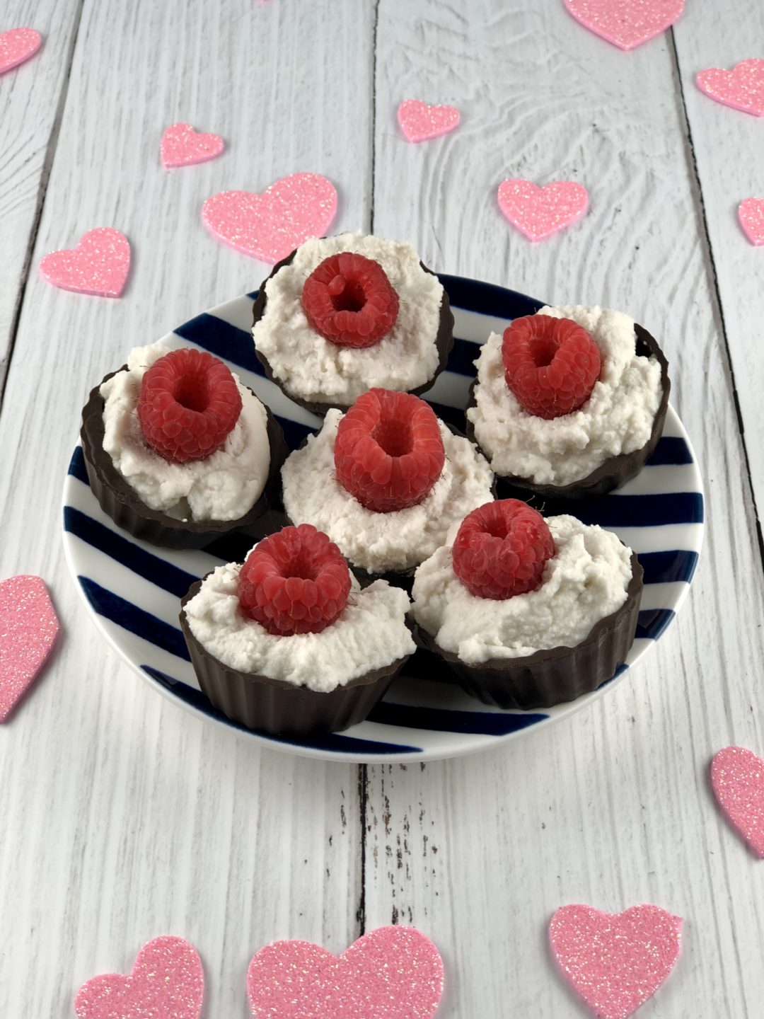 - Add a large spoonful of whipped cream into each chocolate cup and garnish with your favorite low FODMAP fruit.