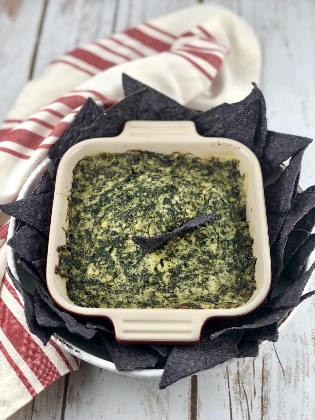 Okay, years ago before I got into the blogging/website world I had a few recipes that I was famous for and by famous I mean my friends and family asked for them over and over again. 😉 One of them being a BOMB spinach and artichoke dip that was absolutely delicious and addicting. I would always double the recipe because it was such a hit. I still make it for certain family occasions but I haven’t been able to eat it in years. It is made with lots of Parmesan cheese, cream cheese, garlic, bread crumbs, which is definitely not FODMAP friendly. With the Super Bowl around the corner, (really I could care less about the game but I do like the half time show and commercials), I wanted to create my own version that would be safe and my family and friends would still enjoy. This is the perfect recipe to include in your FODMAP appetizers recipe collection.