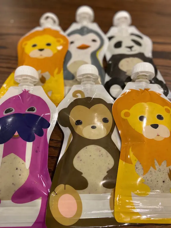 - Pour into reusable pouches until after 3/4 full.