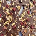 - Add toasted nuts and dried fruit to the top of the chocolate with a sprinkle of optional salt if wanted.