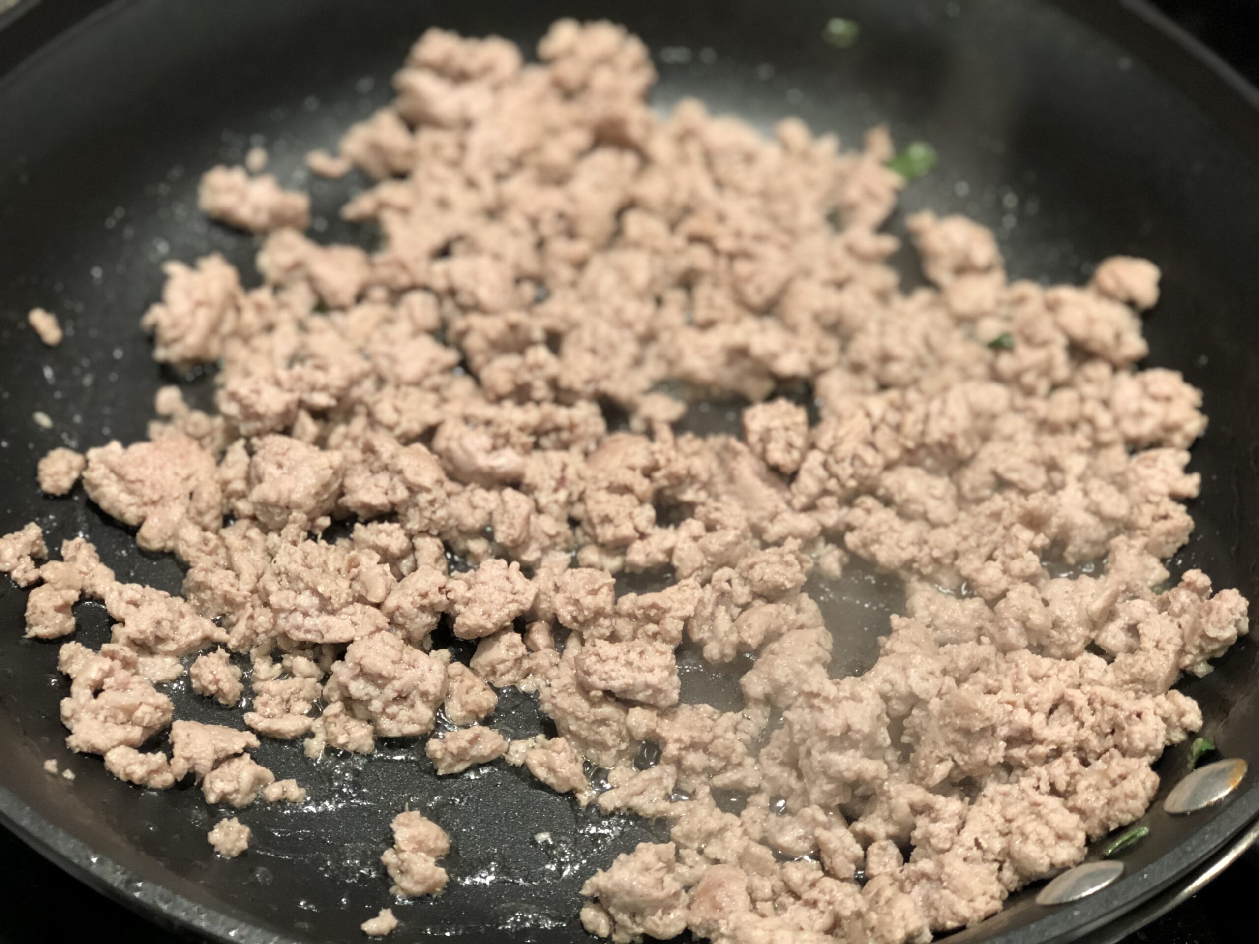 Ground turkey browned until cooked through in large pan