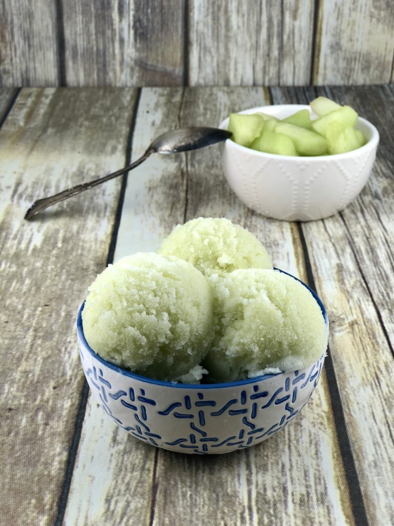 It is no secret that I have a huge sweet tooth and during the summer months my taste buds crave something cold and refreshing. There is nothing like being in the Texas heat and coming inside for a light and refreshing dessert like this! I love all the summertime fruits like berries, cantaloupe, and honeydew and always try to buy in bulk when on sale. There is nothing better than having summer berries frozen in the freezer for those fall and winter months! What makes it even better is that these summer time fruits are also FODMAP safe! Win, win! Please note this recipe is more of a granita than sorbet as it’s more flakier than a traditional sorbet. What’s your favorite summer time Fodmap dessert recipes?! Check out some of my favorite ice cream recipes: peanut butter banana ice cream and strawberry basil ice cream.
