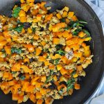 - Cook the squash for about 5 minutes before adding the spinach and cook for an additional 10 minutes until squash is soft. Add the turmeric, sea salt, cinnamon and apple cider vinegar and stir to combine.