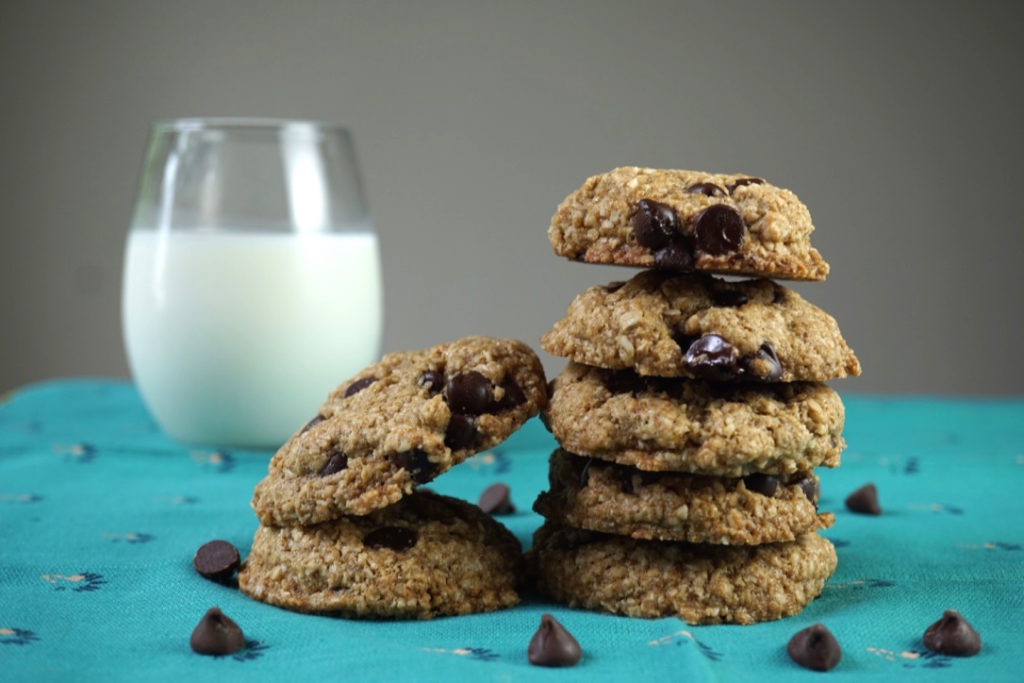 I think it’s safe to say that my FAVORITE treat in the whole wide world is a good ole warm chocolate chip cookie. There is nothing more satisfying than a chocolate chip cookie fresh out of the oven with a glass of (dairy-free) milk. This recipe is almost more of a “breakfast” cookie due to the oat-y nature of it. Okay, maybe I’m just rationalizing more than I should but we’re all adults here! P.S. are you looking for a FODMAP safe milk that won’t hurt your tummy? I have had a horrible time finding one as even the dairy-free milk alternatives would hurt my stomach. MALK milk (the pecan and almond ones) have been such a blessing. These kinds of milk have no fillers, preservatives, cold pressed and as close as you can come to making it yourself without actually make it! Trust me, you’ll be in LOVE!