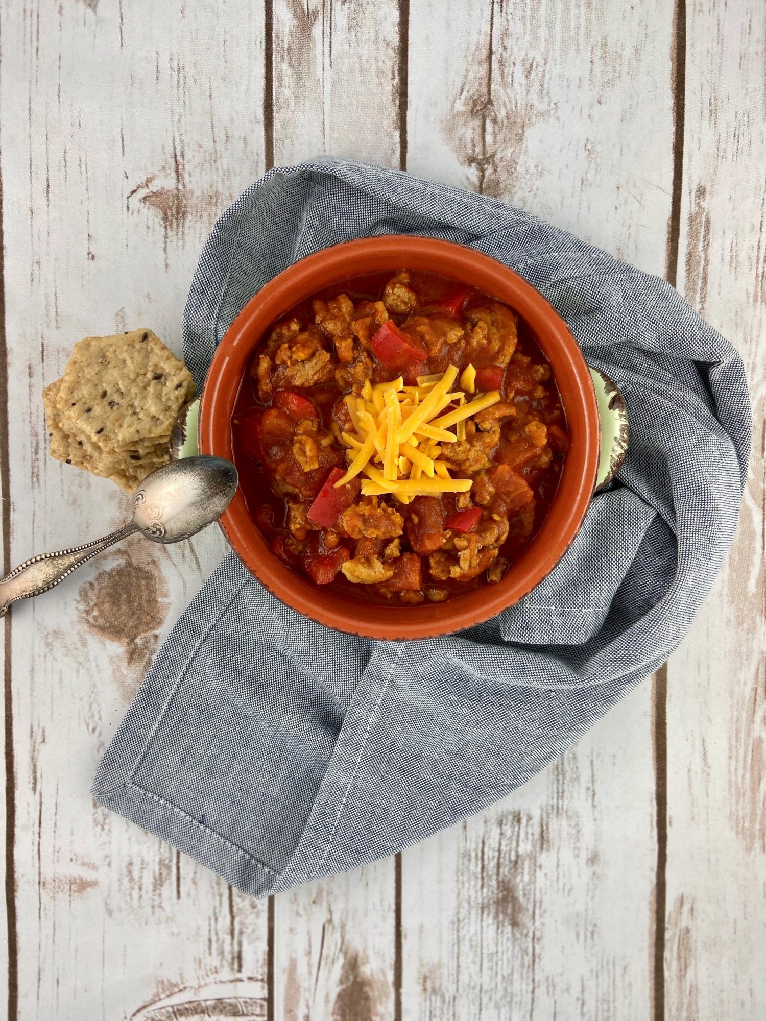 This time of year as it’s getting dark earlier (thank you day light savings UGH!) and the temperatures are dropping, my taste buds are changing. I want bowls of comfort that warms both my tummy and body. It can be hard finding FODMAP diet dinner recipes that are safe to order out at restaurants. I have always loved turkey chili but finding one that is garlic free, onion free and low in beans can be challenging. So what did I decide to do? Make my own version of course! This pumpkin turkey chili recipe is SO delicious and satisfying that no one will miss the garlic or beans!
