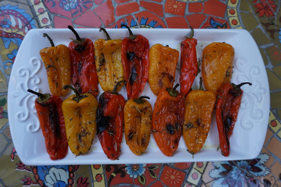 - Sprinkle seasoning and olive oil over peppers and mix well.