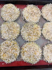 - Slice the eggplant into 1/2″ inch rounds and sprinkle with salt for 20 minutes.*