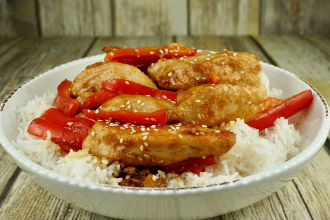 Traditionally sesame chicken is breaded and fried which don’t get me wrong is delicious but it also leaves me feeling heavy, full and bloated. I also end up being hungry quickly after dinner and needing something additional to eat.
