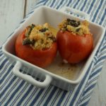 - Spray a small baking dish with nonstick cooking spray and place the stuffed tomatoes.