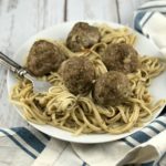 - In a large bowl Gently mix in all of the meatball ingredients (excluding the pasta of course) and form into roughly 1 inch round balls.