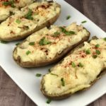 There is nothing more comforting than a good ‘ole baked potato. My favorite thing to order on a BBQ restaurant menu is a stuffed baked potato. Twice baked potatoes have the same idea as stuffed baked potato but the presentation is better to make for a large crowd. Not only do the present beautifully but they are cost-effective and take very little effort! There are so many variations when it comes to twice baked potatoes you can make so let your imagination run wild! I’m pretty basic with mine but you can add different proteins and FODMAP safe vegetables. You can also feel good knowing potatoes are safe to put on your IBS diet plan. Potatoes have always been a stomach soother for me when I’m having an “off” day. What are your some of your stomach soothers?