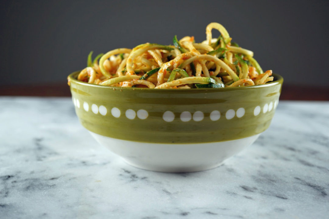 1. Follow instructions of spiralizer to turn zucchini into noodles.